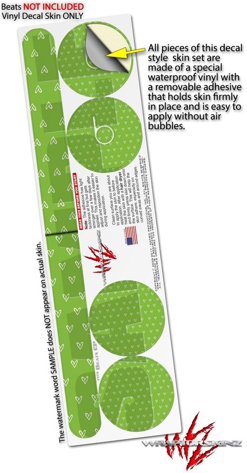 WraptorSkinz Skin Decal Wrap compatible with Beats EP Headphones Hearts Green On White Skin Only HEADPHONES NOT INCLUDED
