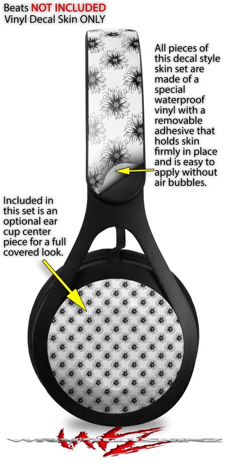 WraptorSkinz Skin Decal Wrap compatible with Beats EP Headphones Kearas Daisies Black on White Skin Only HEADPHONES NOT INCLUDED