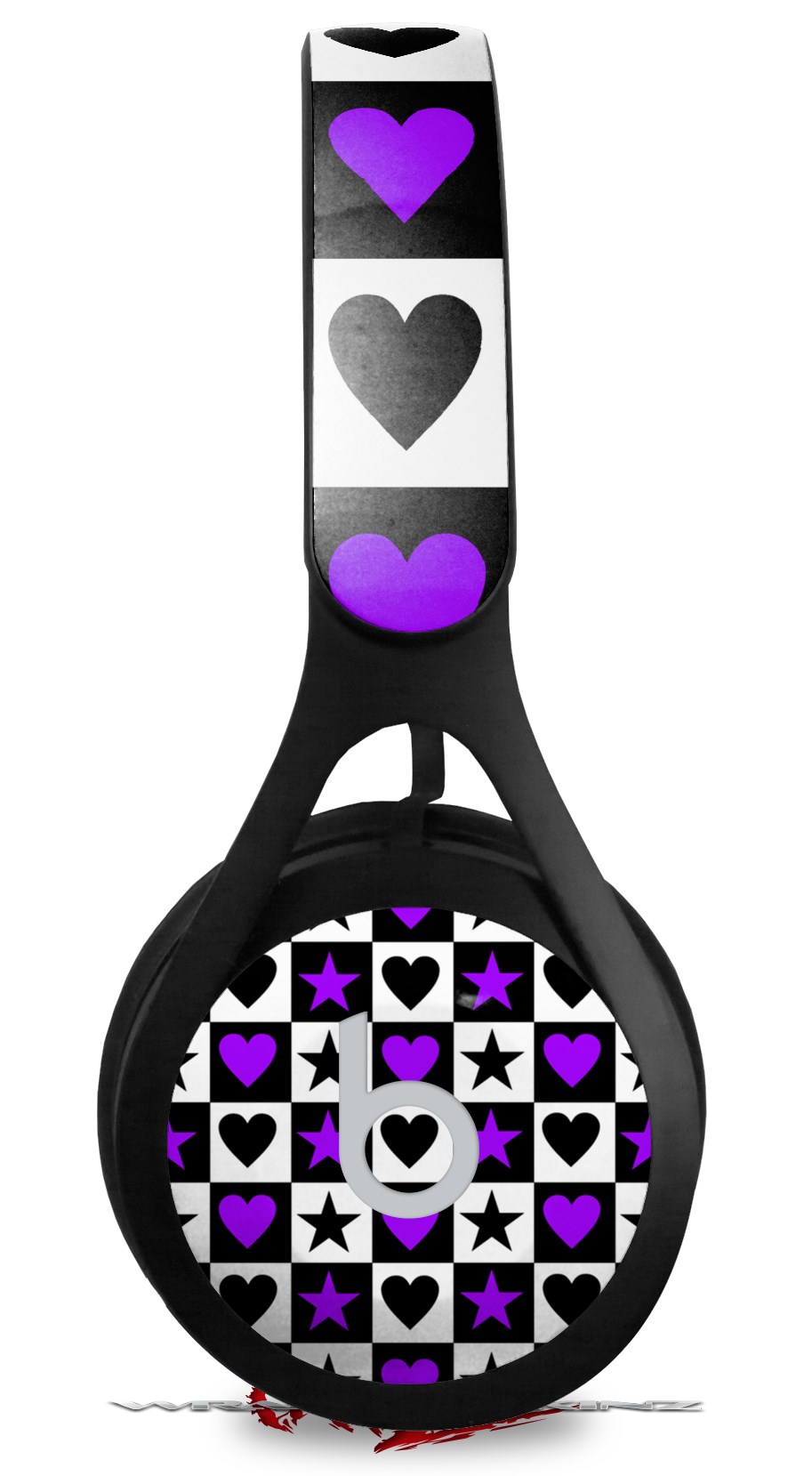 WraptorSkinz Skin Decal Wrap compatible with Beats EP Headphones Purple Hearts And Stars Skin Only HEADPHONES NOT INCLUDED