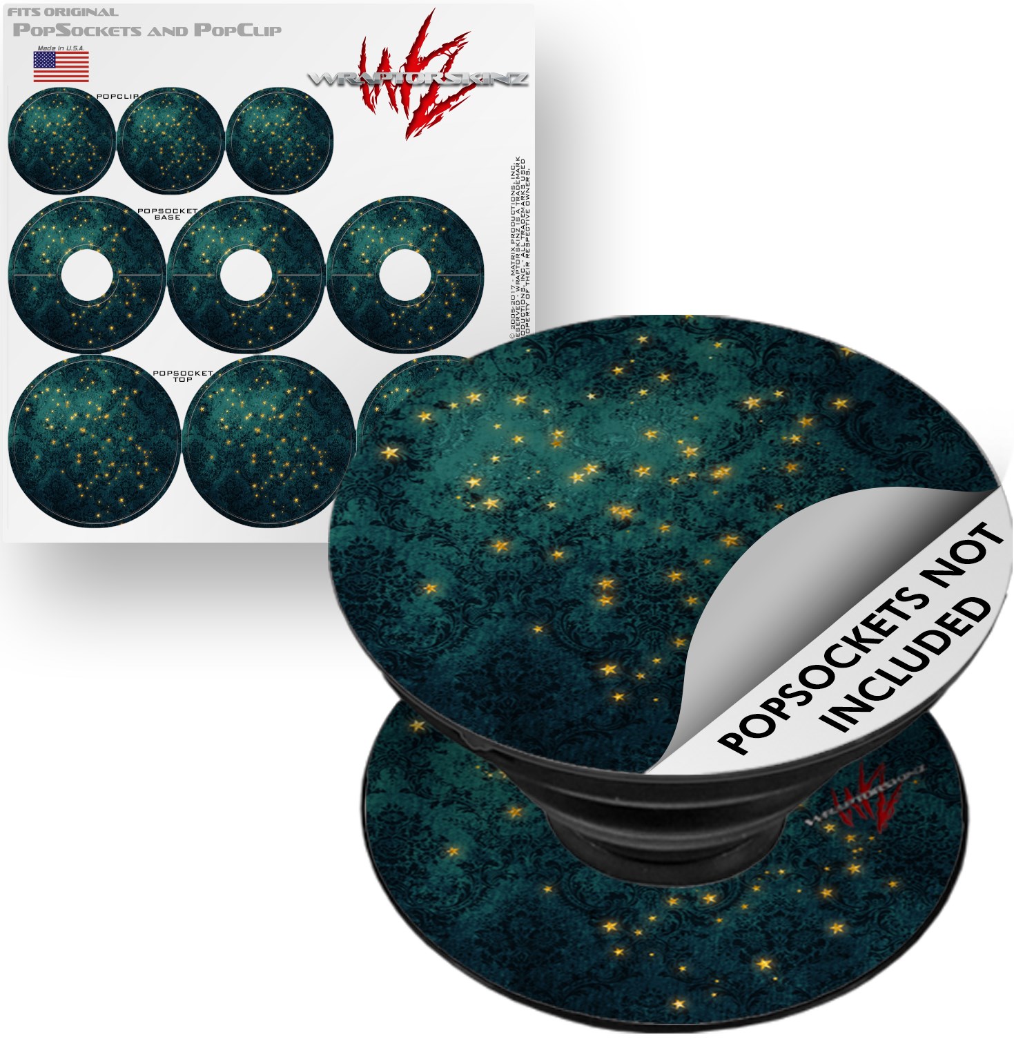 WraptorSkinz® skin decals are printed using superb photo quality designs and vibrant colors printed with special fade resistant inks that last even in direct sun for years. WraptorSkinz® are a composite of two layers of commercial grade materials. The bottom layer is a soft, flexible vinyl with a special removable adhesive that is easily positioned, applied without air bubbles. Next, we print the bottom layer with UV protected, fade resistant inks that deliver superb photo quality designs in vibrant colors. Finally, we bond a professional grade laminate over the entire skin adding a glossy protective finish. This WraptorSkinz skin accessory is not affiliated with, endorsed by and is in no way connected with the PopSocket products or brand.