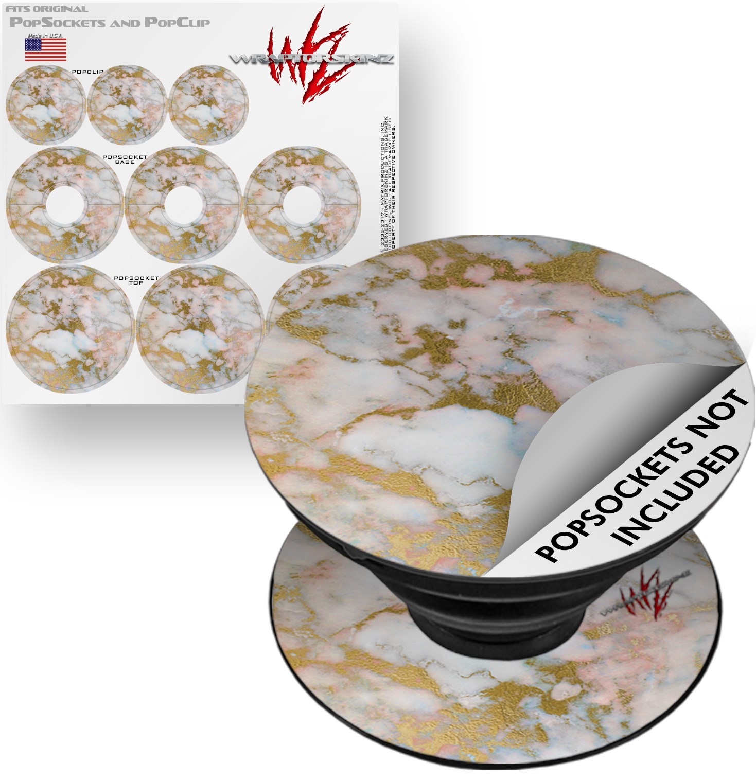 Decal Style Vinyl Skin Wrap 3 Pack for PopSockets Pastel Gilded Marble (POPSOCKET NOT INCLUDED)