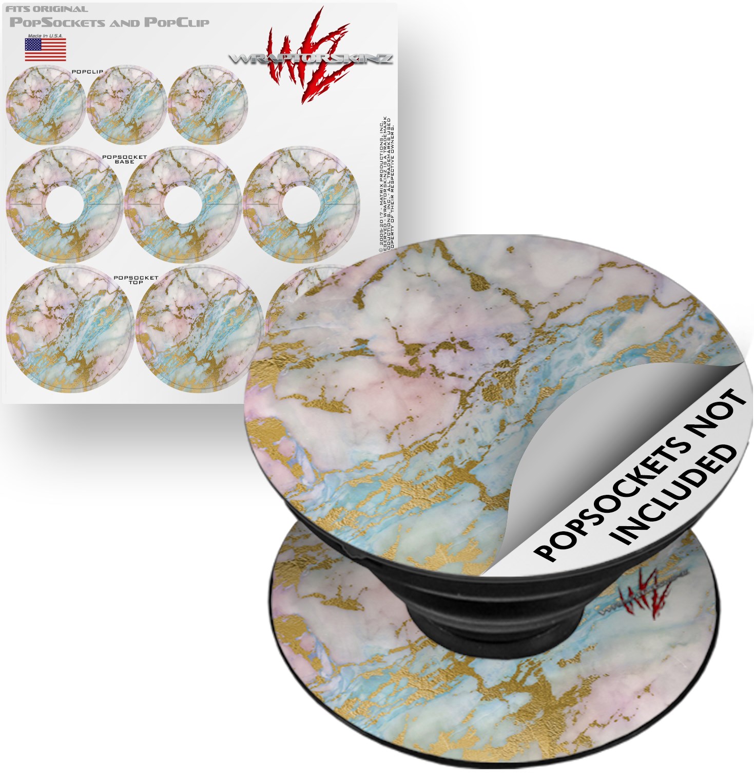 WraptorSkinz® skin decals are printed using superb photo quality designs and vibrant colors printed with special fade resistant inks that last even in direct sun for years. WraptorSkinz® are a composite of two layers of commercial grade materials. The bottom layer is a soft, flexible vinyl with a special removable adhesive that is easily positioned, applied without air bubbles. Next, we print the bottom layer with UV protected, fade resistant inks that deliver superb photo quality designs in vibrant colors. Finally, we bond a professional grade laminate over the entire skin adding a glossy protective finish. This WraptorSkinz skin accessory is not affiliated with, endorsed by and is in no way connected with the PopSocket products or brand.