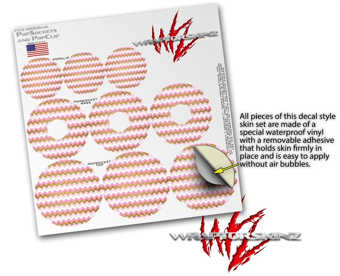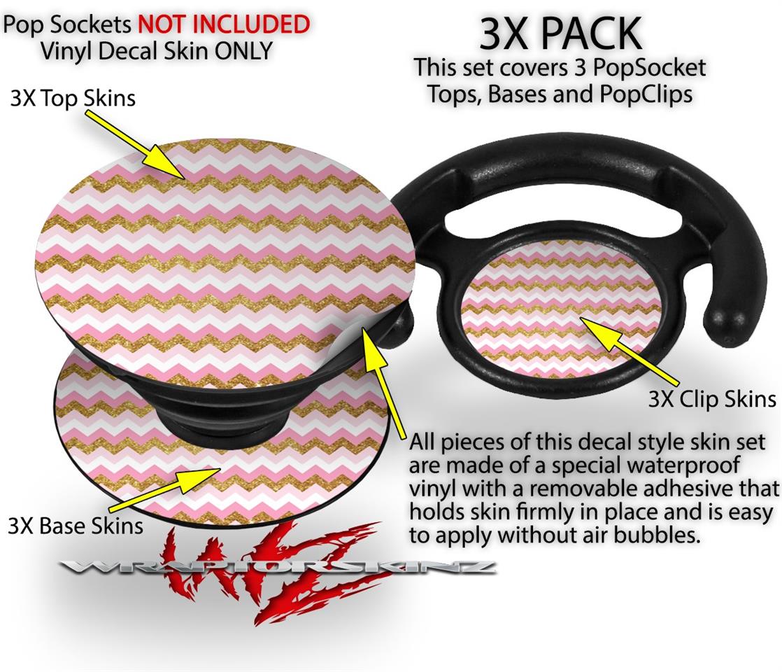 Decal Style Vinyl Skin Wrap 3 Pack for PopSockets Pink and White Chevron (POPSOCKET NOT INCLUDED)