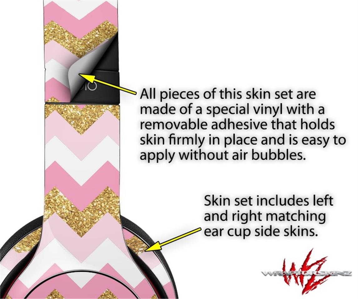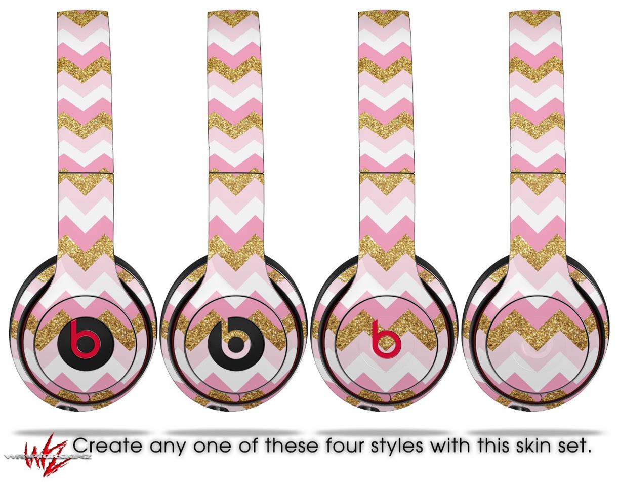 WraptorSkinz Skin Decal Wrap compatible with Beats Solo 2 and Solo 3 Wireless Headphones Pink and White Chevron (HEADPHONES NOT INCLUDED)