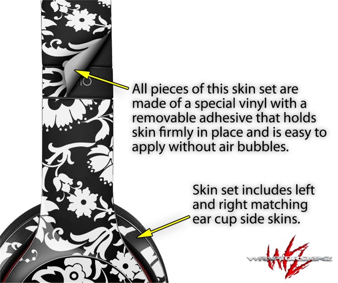 WraptorSkinz Skin Decal Wrap compatible with Beats Solo 2 and Solo 3 Wireless Headphones Black and White Flower (HEADPHONES NOT INCLUDED)