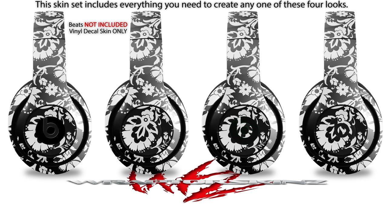 WraptorSkinz Skin Decal Wrap compatible with Beats Studio 2 and 3 Wired and Wireless Headphones Black and White Flower Skin Only (HEADPHONES NOT INCLUDED)