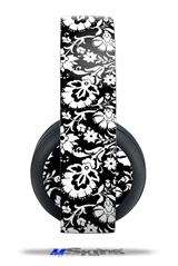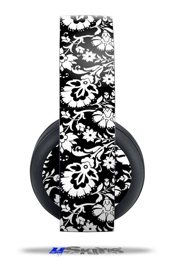 Vinyl Decal Skin Wrap compatible with Original Sony PlayStation 4 Gold Wireless Headphones Black and White Flower (PS4 HEADPHONES  NOT INCLUDED)