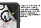 WraptorSkinz® are self adhering vinyl decal style skins and are a great way to add a new look to your existing protective case. WraptorSkinz® are a composite of two layers of commercial grade materials. The bottom layer is a soft, flexible vinyl with a special removable adhesive that is easily positioned, applied without air bubbles. Next we print the bottom layer with UV protected, fade resistant inks that deliver superb photo quality designs in vibrant colors. Finally we bond a professional grade laminate over the entire skin adding a glossy protective finish.