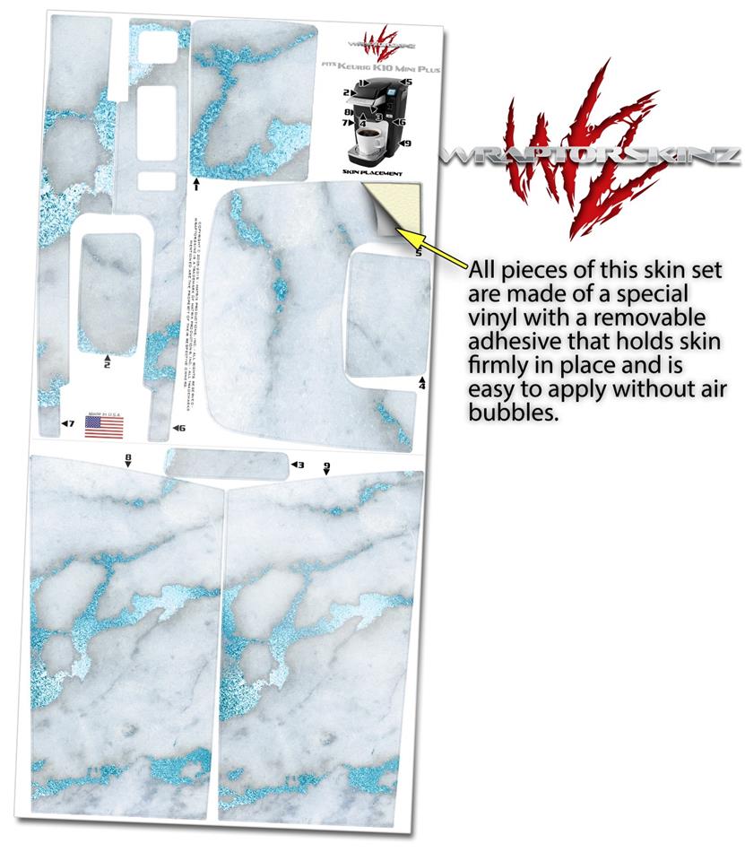 Decal Style Vinyl Skin compatible with Keurig K10 / K15 Mini Plus Coffee Makers Mint Gilded Marble (KEURIG NOT INCLUDED)