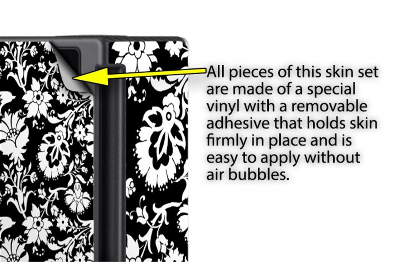 WraptorSkinz® skins are superb photo quality designs and vibrant colors printed with special Eco-Friendly, fade resistant inks. Our skins are self-adhering flexible vinyl skins that helps prevent scratches. Made of composite, multi-layered commercial grade materials. The bottom layer is made with a special removable adhesive that is easily positioned and applied without air bubbles. We print your design on the bottom layer then bond a professional grade laminate over the entire skin adding a glossy protective finish.