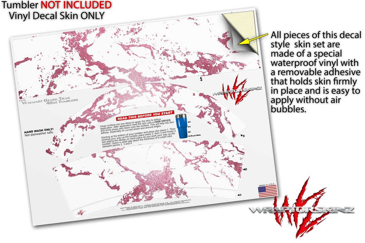 WraptorSkinz® skin wraps for Walmart Ozark Trail Tumblers are printed using superb photo quality designs and vibrant colors printed with special fade resistant inks that last even in direct sun for years. WraptorSkinz® are a composite of two layers of commercial grade materials. The bottom layer is a soft, flexible vinyl with a special removable adhesive that is easily positioned, applied without air bubbles. Next we print the bottom layer with UV protected, fade resistant inks that deliver superb photo quality designs in vibrant colors. Finally we bond a professional grade laminate over the entire skin adding a glossy protective finish.