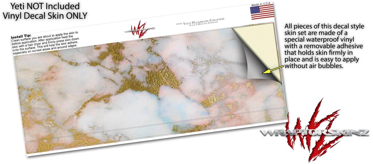 Skin Decal Wrap for Yeti Colster, Ozark Trail and RTIC Can Coolers - Pastel Gilded Marble (COOLER NOT INCLUDED)