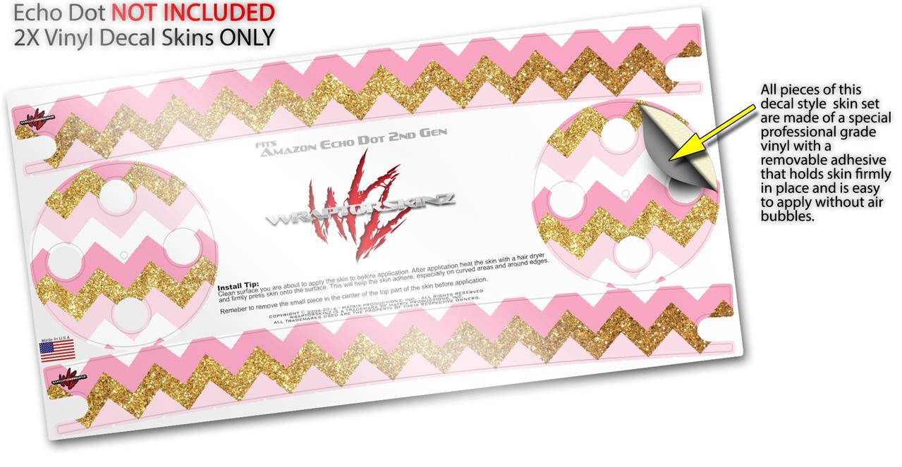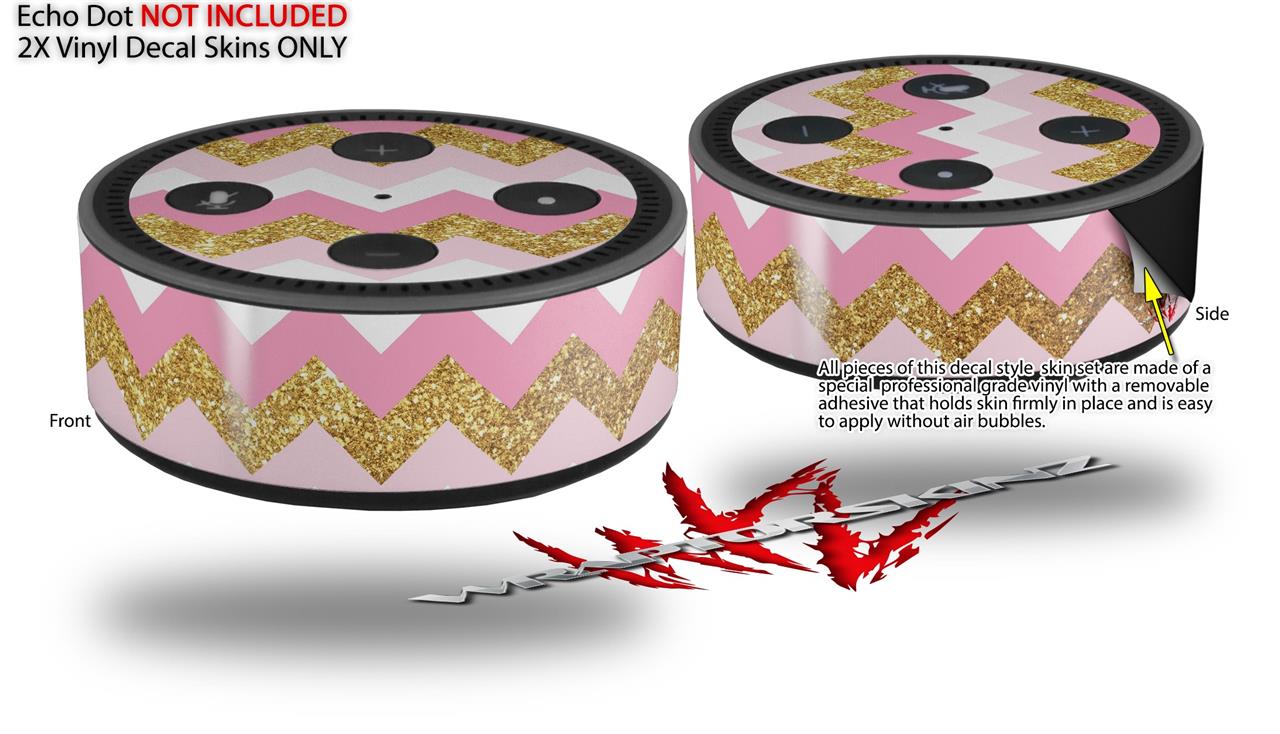 Skin Wrap Decal Set 2 Pack for Amazon Echo Dot 2 - Pink and White Chevron (2nd Generation ONLY - Echo NOT INCLUDED)