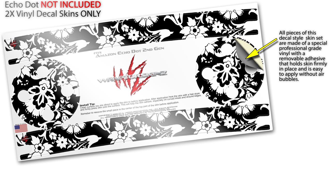 Skin Wrap Decal Set 2 Pack for Amazon Echo Dot 2 - Black and White Flower (2nd Generation ONLY - Echo NOT INCLUDED)