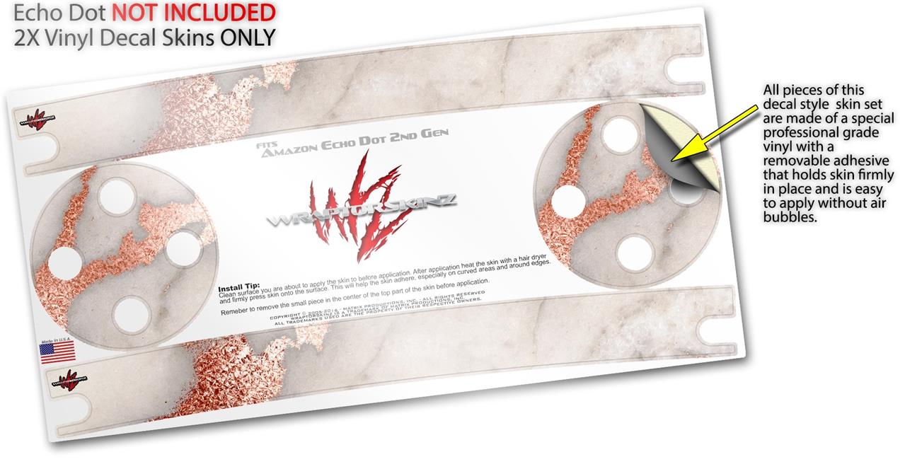 Skin Wrap Decal Set 2 Pack for Amazon Echo Dot 2 - Rose Gold Gilded Marble (2nd Generation ONLY - Echo NOT INCLUDED)