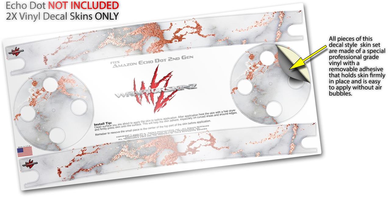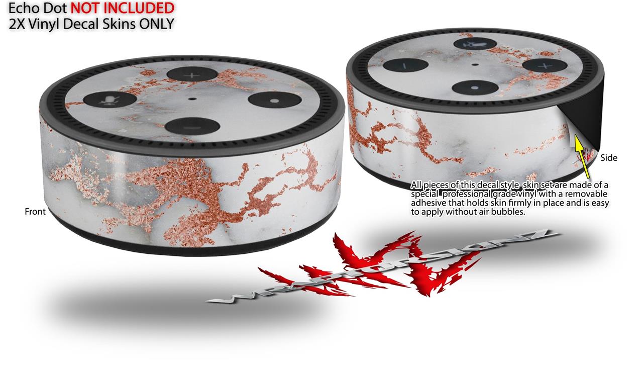 Skin Wrap Decal Set 2 Pack for Amazon Echo Dot 2 - Rose Gold Gilded Grey Marble (2nd Generation ONLY - Echo NOT INCLUDED)