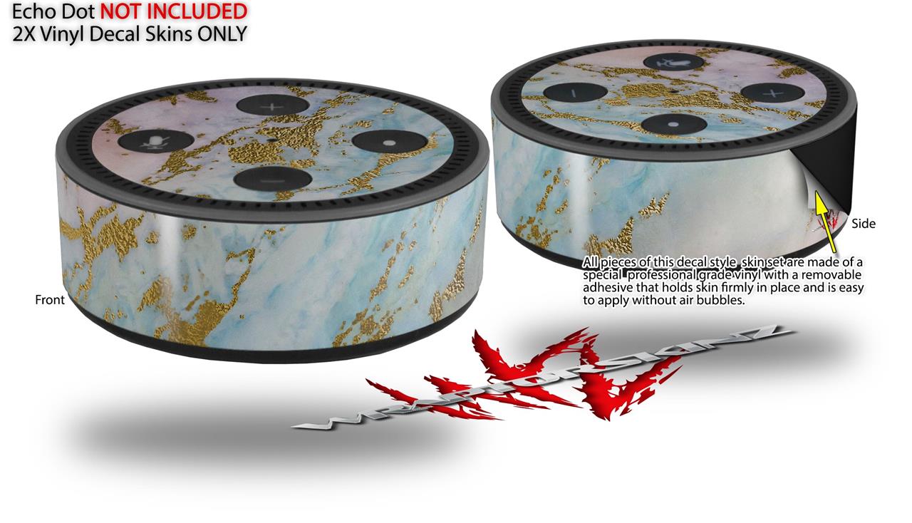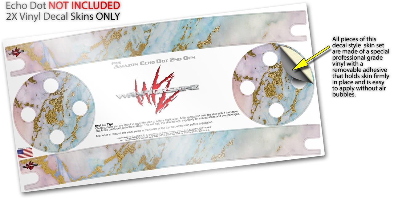 Skin Wrap Decal Set 2 Pack for Amazon Echo Dot 2 - Cotton Candy Gilded Marble (2nd Generation ONLY - Echo NOT INCLUDED)