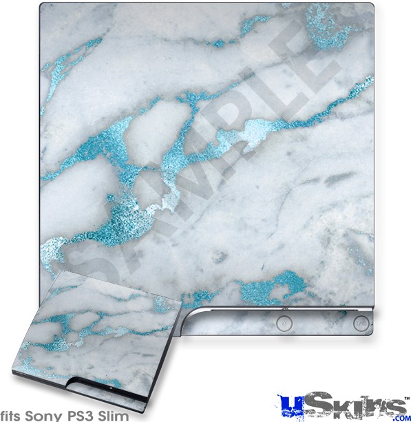 Decal Skin compatible with Sony PS3 Slim Mint Gilded Marble
