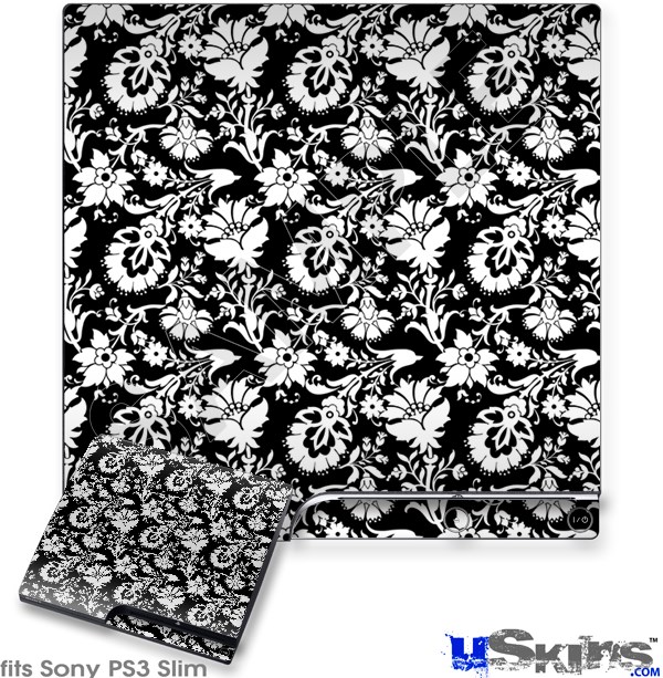 Decal Skin compatible with Sony PS3 Slim Black and White Flower