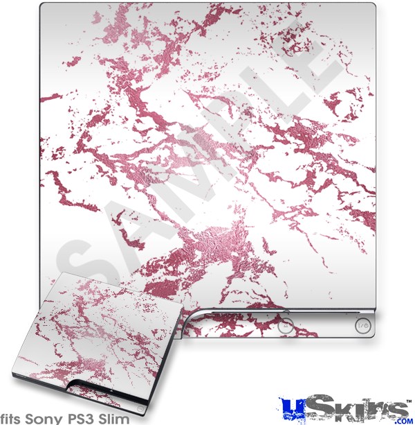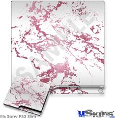 Decal Skin compatible with Sony PS3 Slim Pink and White Gilded Marble