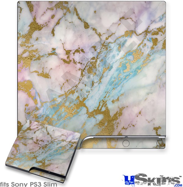 Decal Skin compatible with Sony PS3 Slim Cotton Candy Gilded Marble