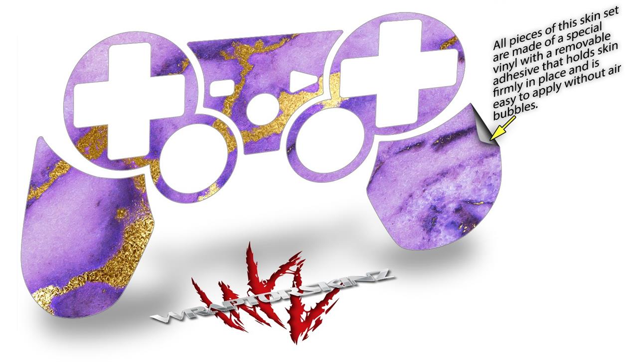 Sony PS3 Controller Decal Style Skin - Purple and Gold Gilded Marble (CONTROLLER NOT INCLUDED)