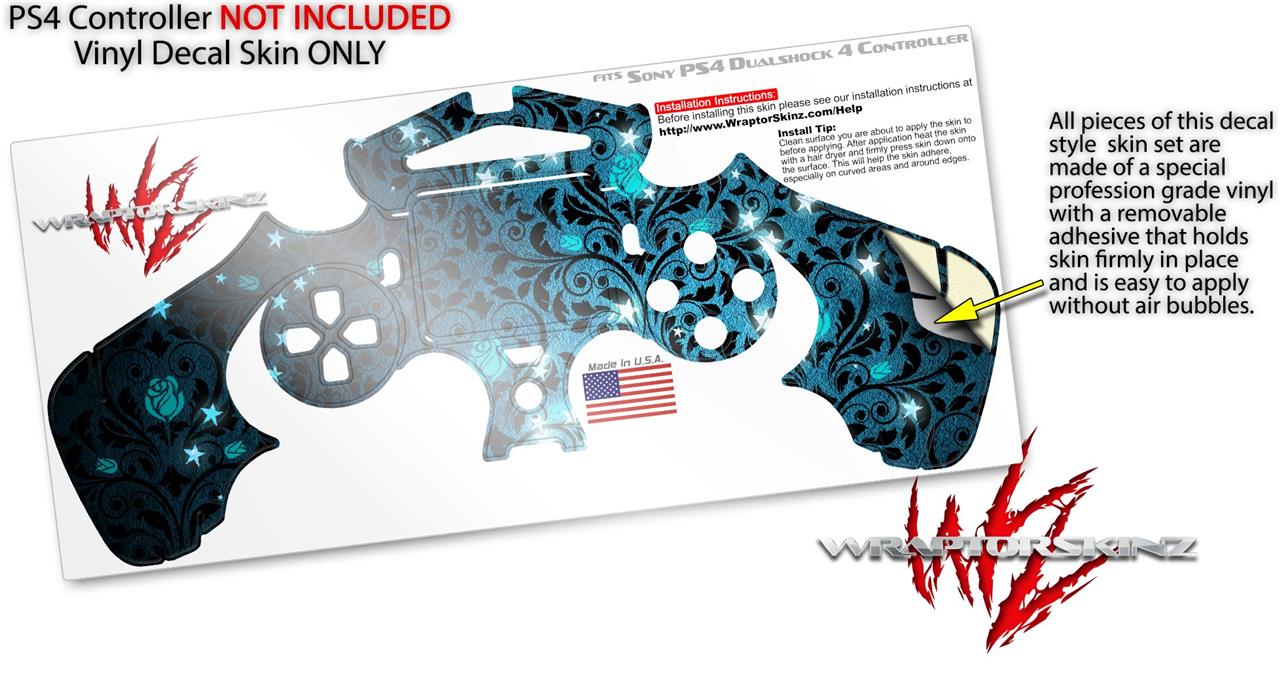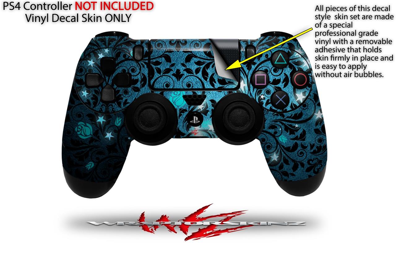 WraptorSkinz Skin compatible with Sony PS4 Dualshock Controller PlayStation 4 Original Slim and Pro Blue Flower Bomb Starry Night (CONTROLLER NOT INCLUDED)