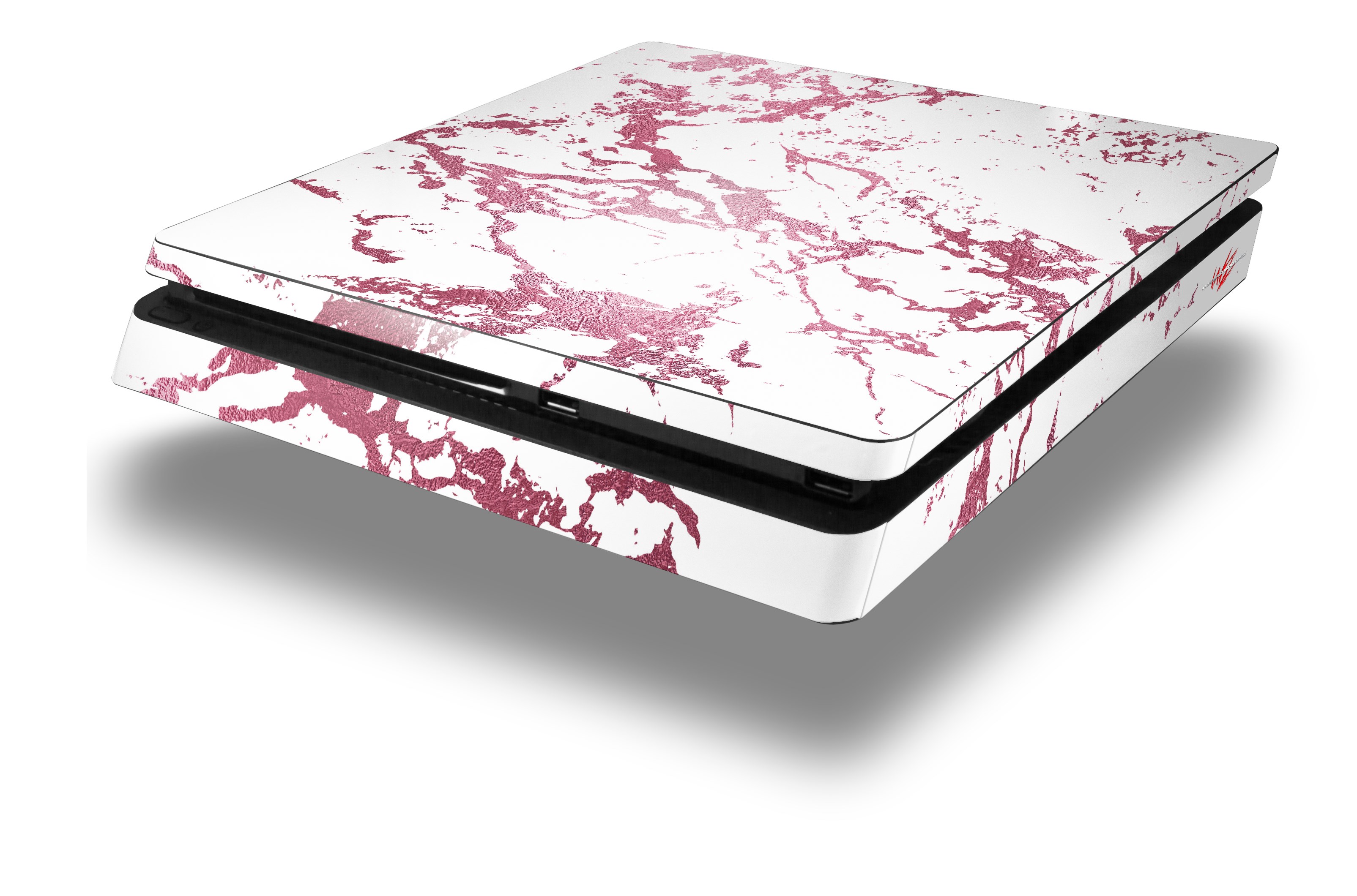 Vinyl Decal Skin Wrap compatible with Sony PlayStation 4 Slim Console Pink and White Gilded Marble (PS4 NOT INCLUDED)