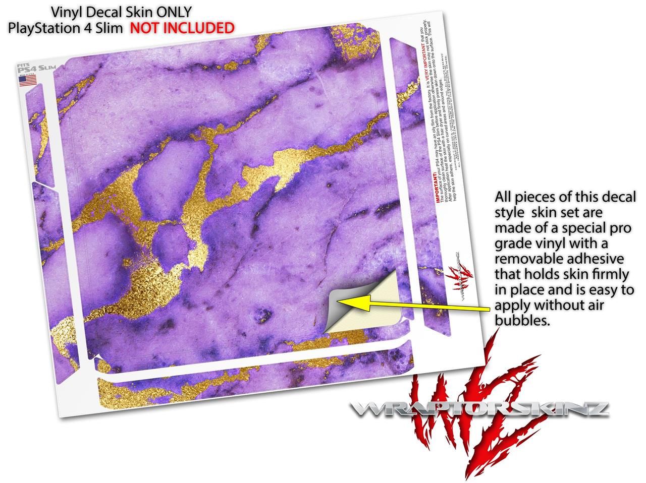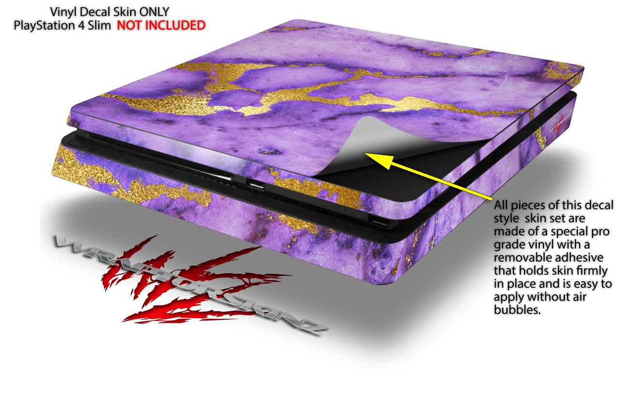 Vinyl Decal Skin Wrap compatible with Sony PlayStation 4 Slim Console Purple and Gold Gilded Marble (PS4 NOT INCLUDED)