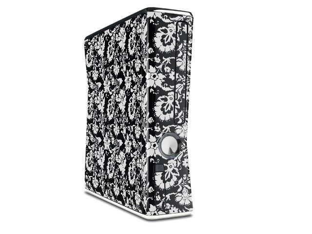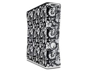 Black and White Flower Decal Style Skin for XBOX 360 Slim Vertical