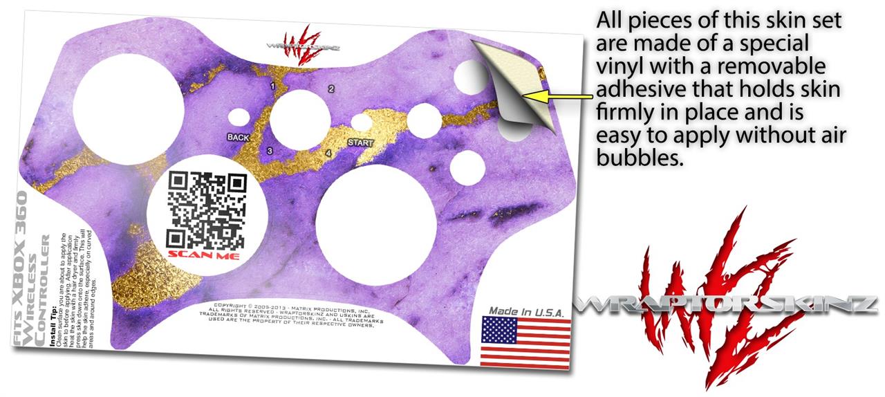 XBOX 360 Wireless Controller Decal Style Skin - Purple and Gold Gilded Marble (CONTROLLER NOT INCLUDED)