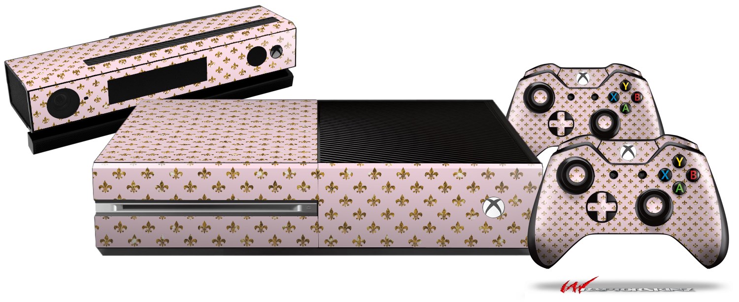 Gold Fleur-de-lis - Holiday Bundle Decal Style Skin fits XBOX One Console Original, Kinect and 2 Controllers (XBOX SYSTEM NOT INCLUDED)