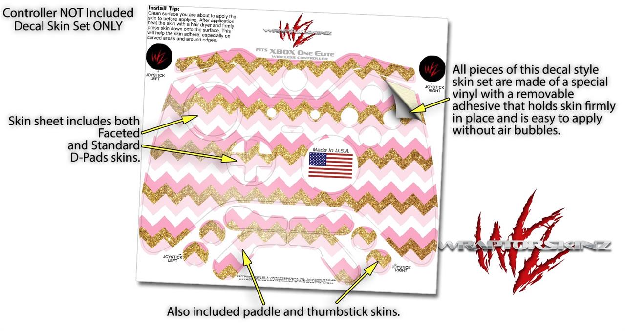 Pink and White Chevron - Decal Style Skin fits Microsoft XBOX One ELITE Wireless Controller
