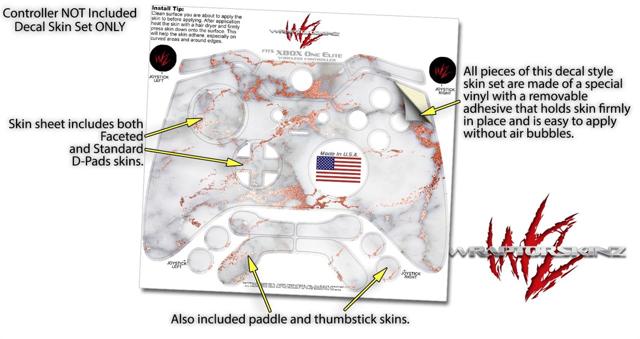Rose Gold Gilded Grey Marble - Decal Style Skin fits Microsoft XBOX One ELITE Wireless Controller