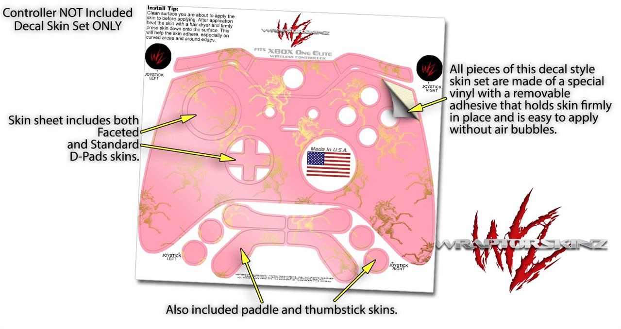 Golden Unicorn - Decal Style Skin fits Microsoft XBOX One ELITE Wireless Controller