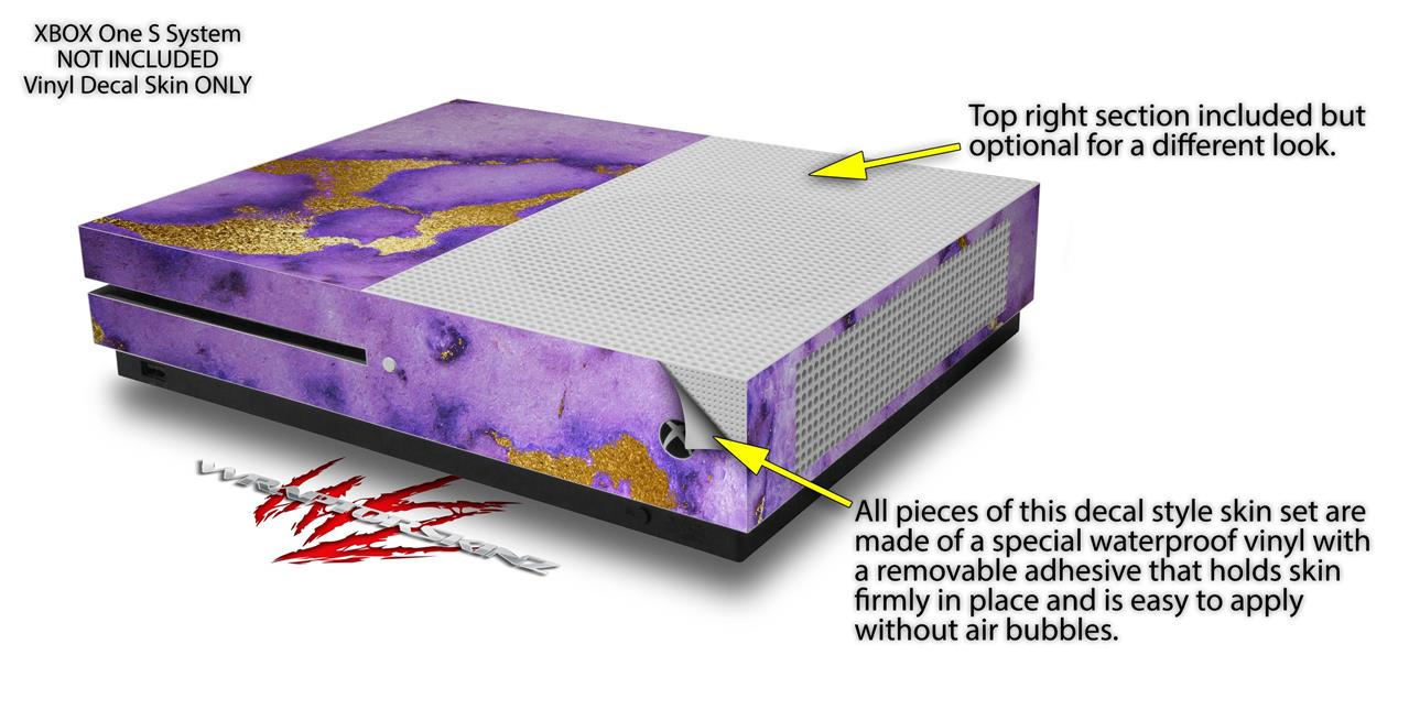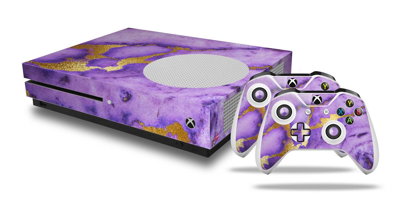 WraptorSkinz Decal Skin Wrap Set works with 2016 and newer XBOX One S Console and 2 Controllers Purple and Gold Gilded Marble