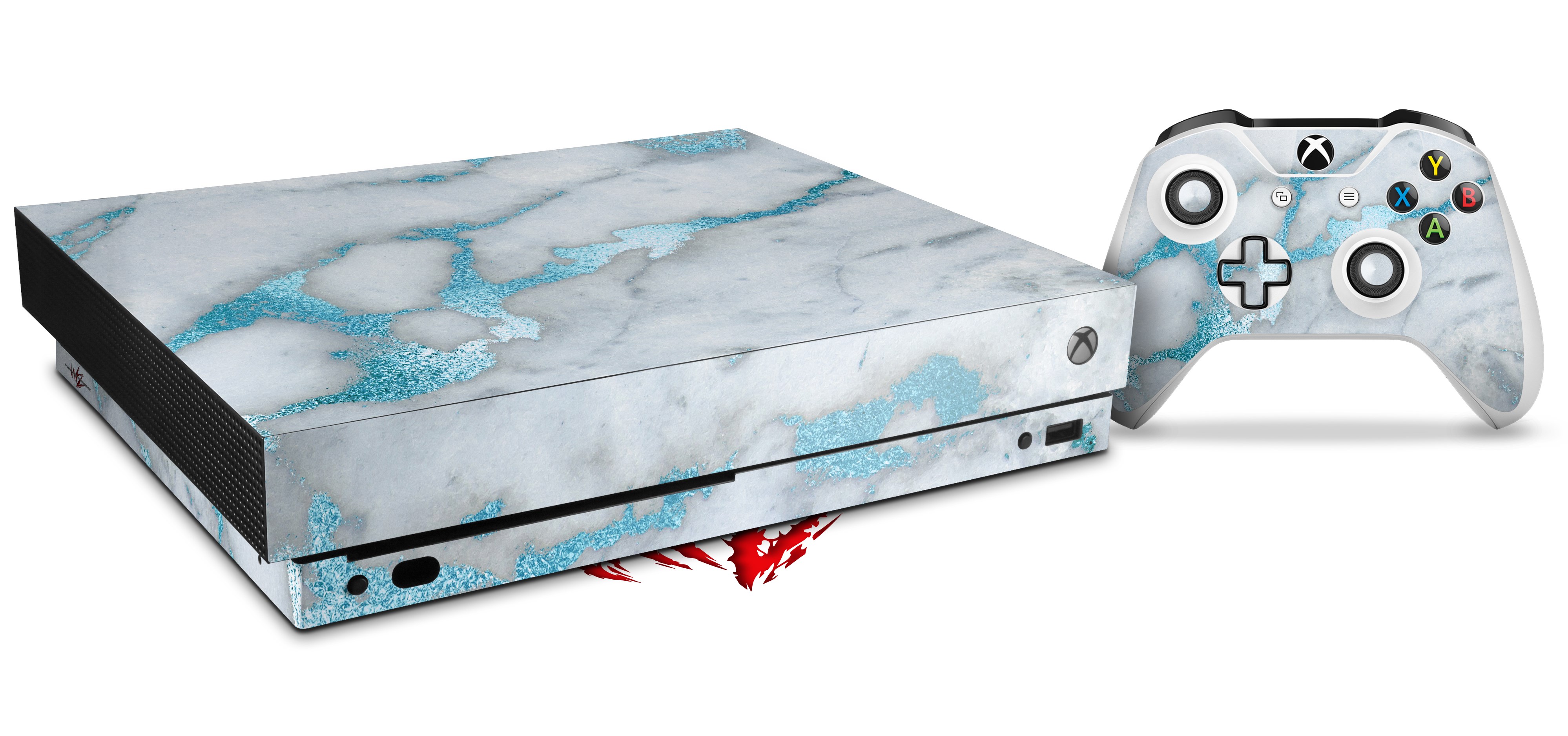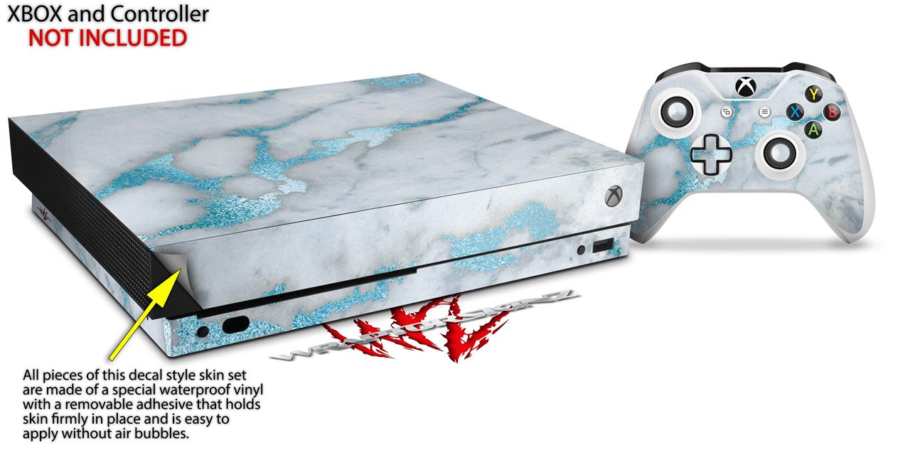 Skin Wrap for XBOX One X Console and Controller Mint Gilded Marble