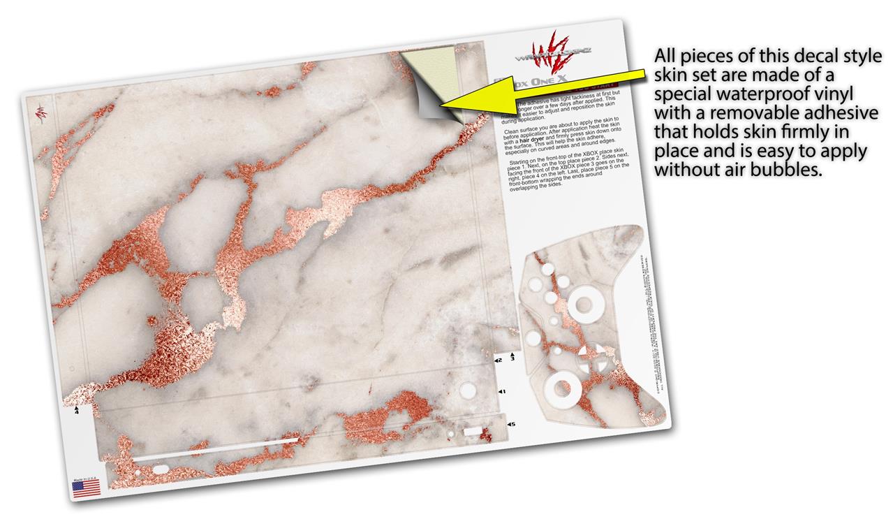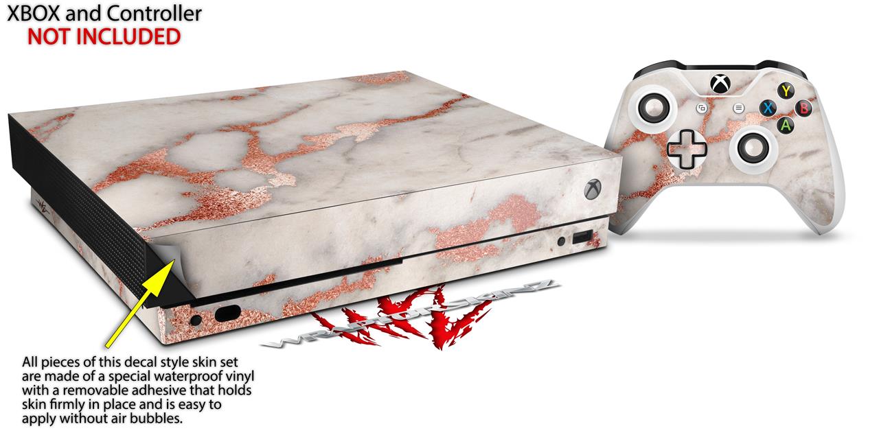Skin Wrap for XBOX One X Console and Controller Rose Gold Gilded Marble
