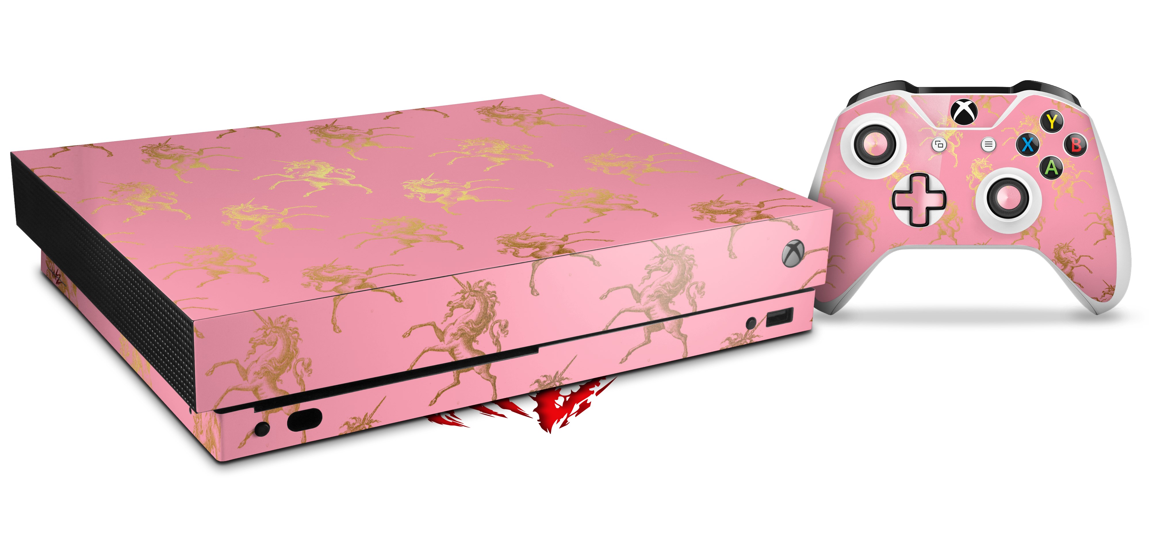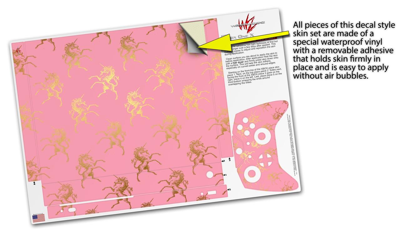 Skin Wrap for XBOX One X Console and Controller Golden Unicorn