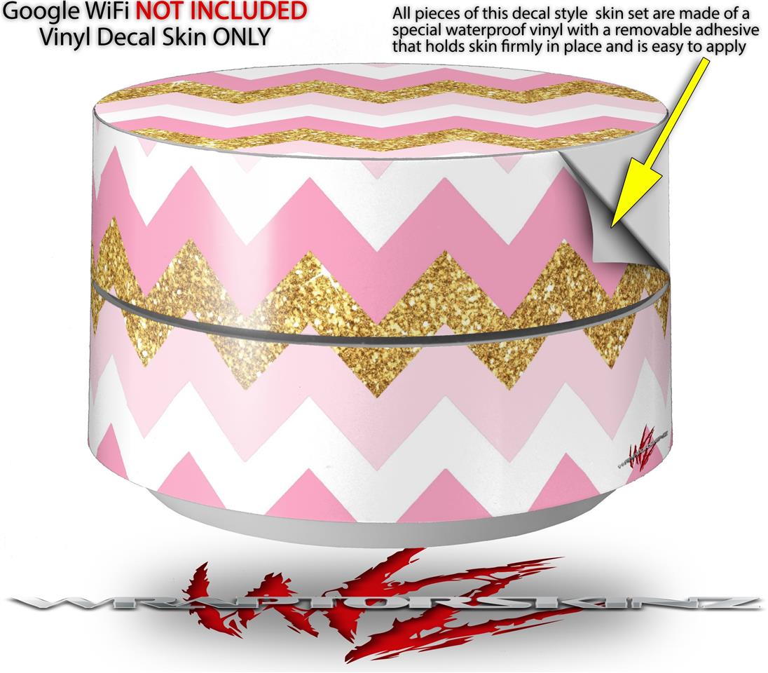 Skin Decal Wrap for Google WiFi Original Pink and White Chevron (GOOGLE WIFI NOT INCLUDED)