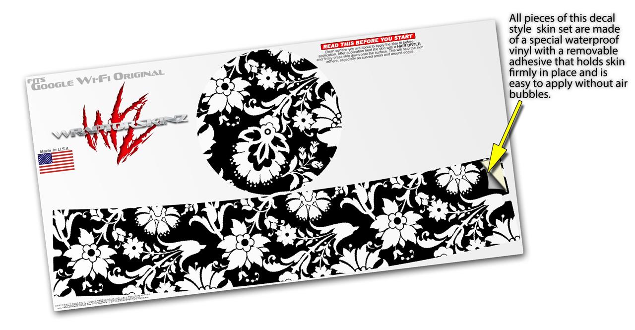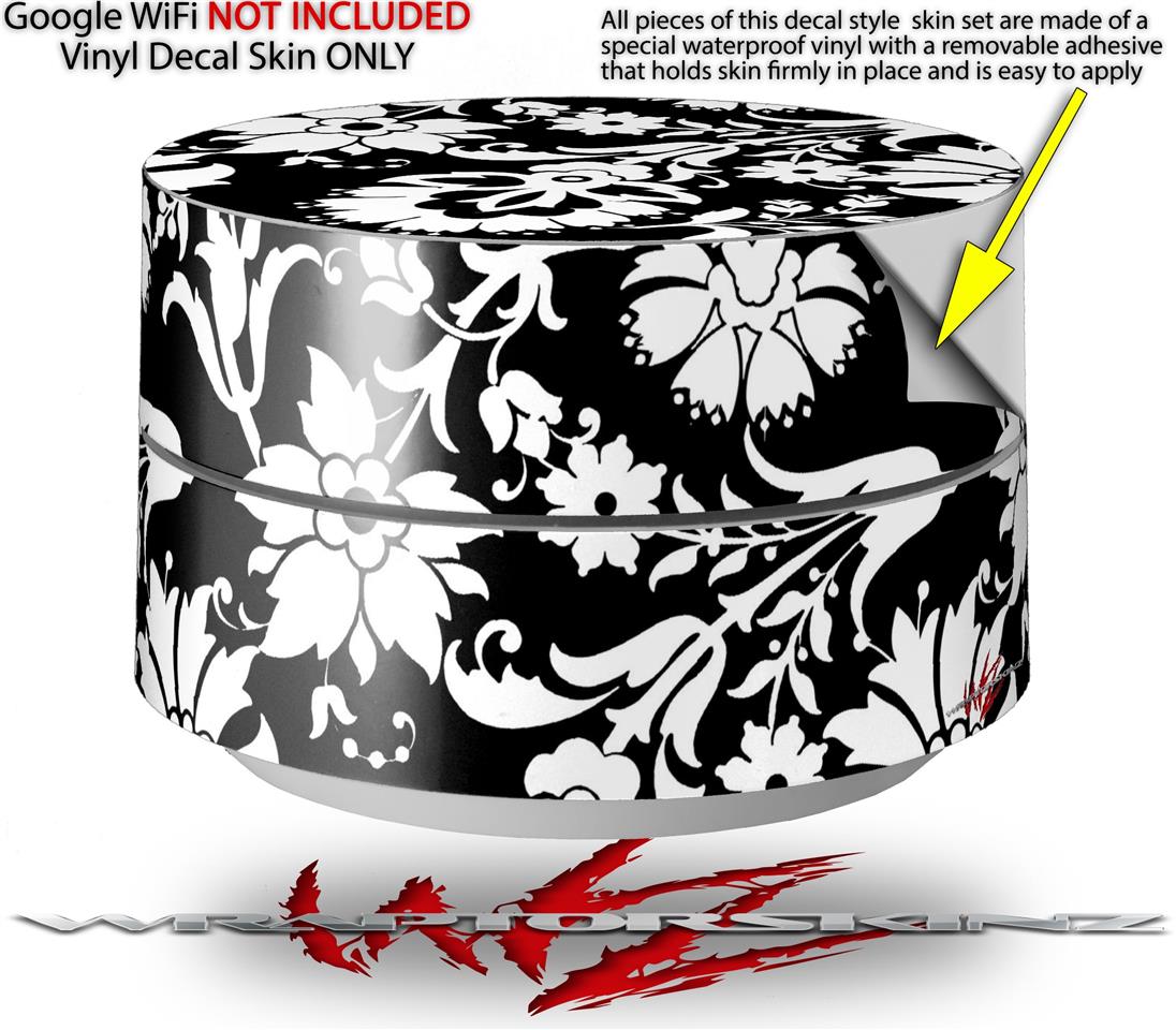 Skin Decal Wrap for Google WiFi Original Black and White Flower (GOOGLE WIFI NOT INCLUDED)