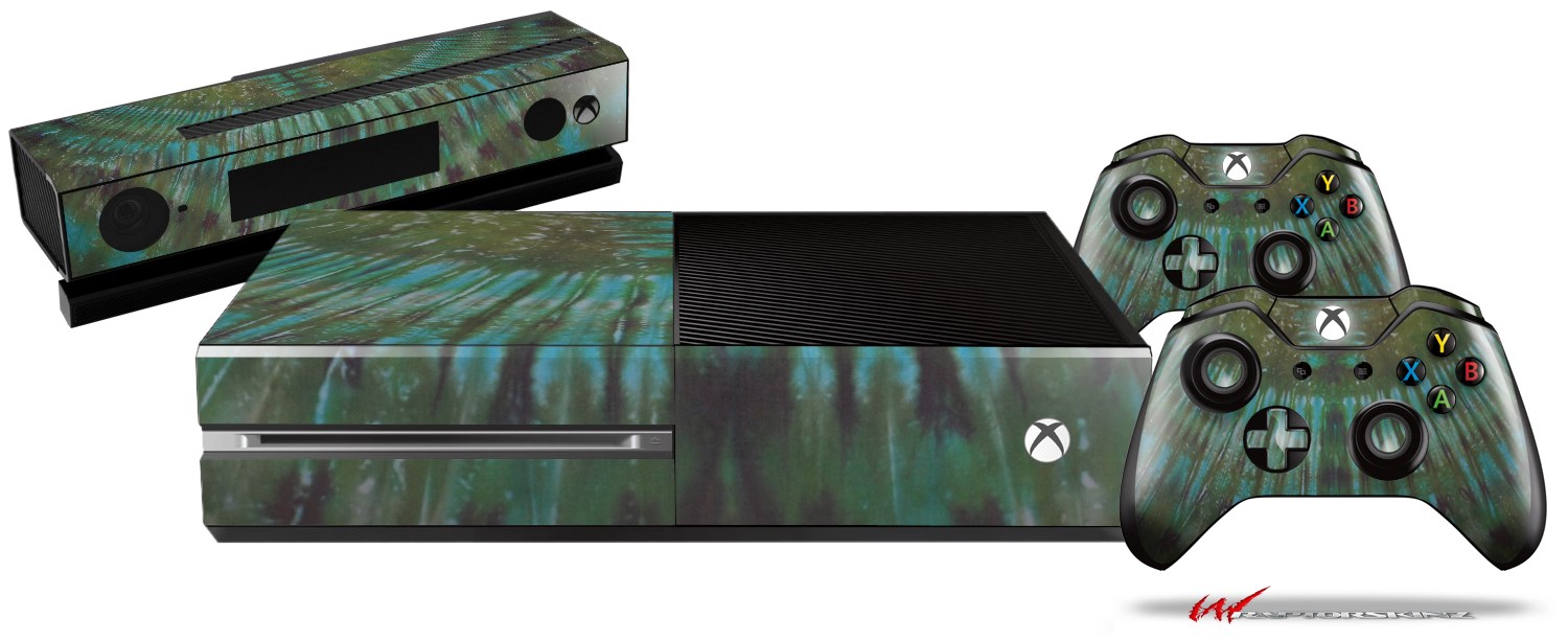 Tie Dye Turquoise Stripes - Holiday Bundle Decal Style Skin fits XBOX One Console Original, Kinect and 2 Controllers (XBOX SYSTEM NOT INCLUDED)