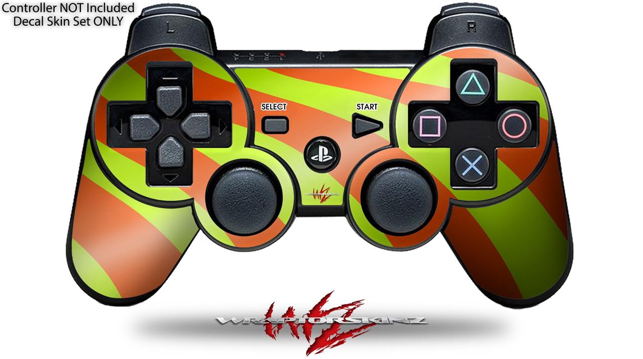 Sony PS3 Controller Decal Style Skin - Two Tone Waves Neon Green Orange (CONTROLLER NOT INCLUDED)