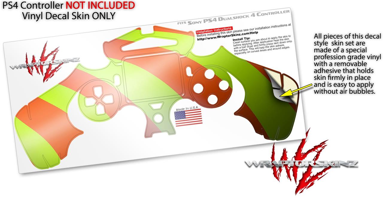 WraptorSkinz Skin compatible with Sony PS4 Dualshock Controller PlayStation 4 Original Slim and Pro Two Tone Waves Neon Green Orange (CONTROLLER NOT INCLUDED)