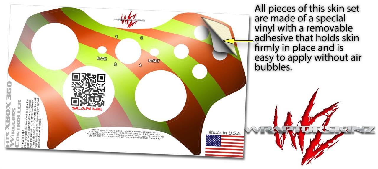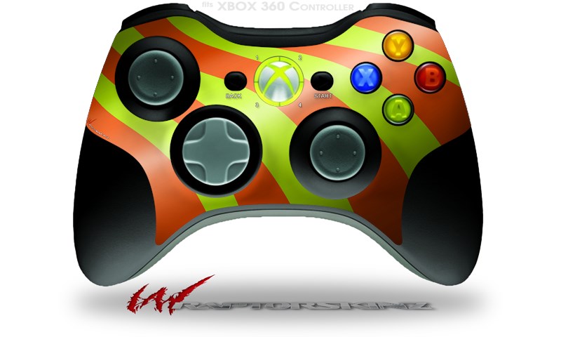 XBOX 360 Wireless Controller Decal Style Skin - Two Tone Waves Neon Green Orange (CONTROLLER NOT INCLUDED)