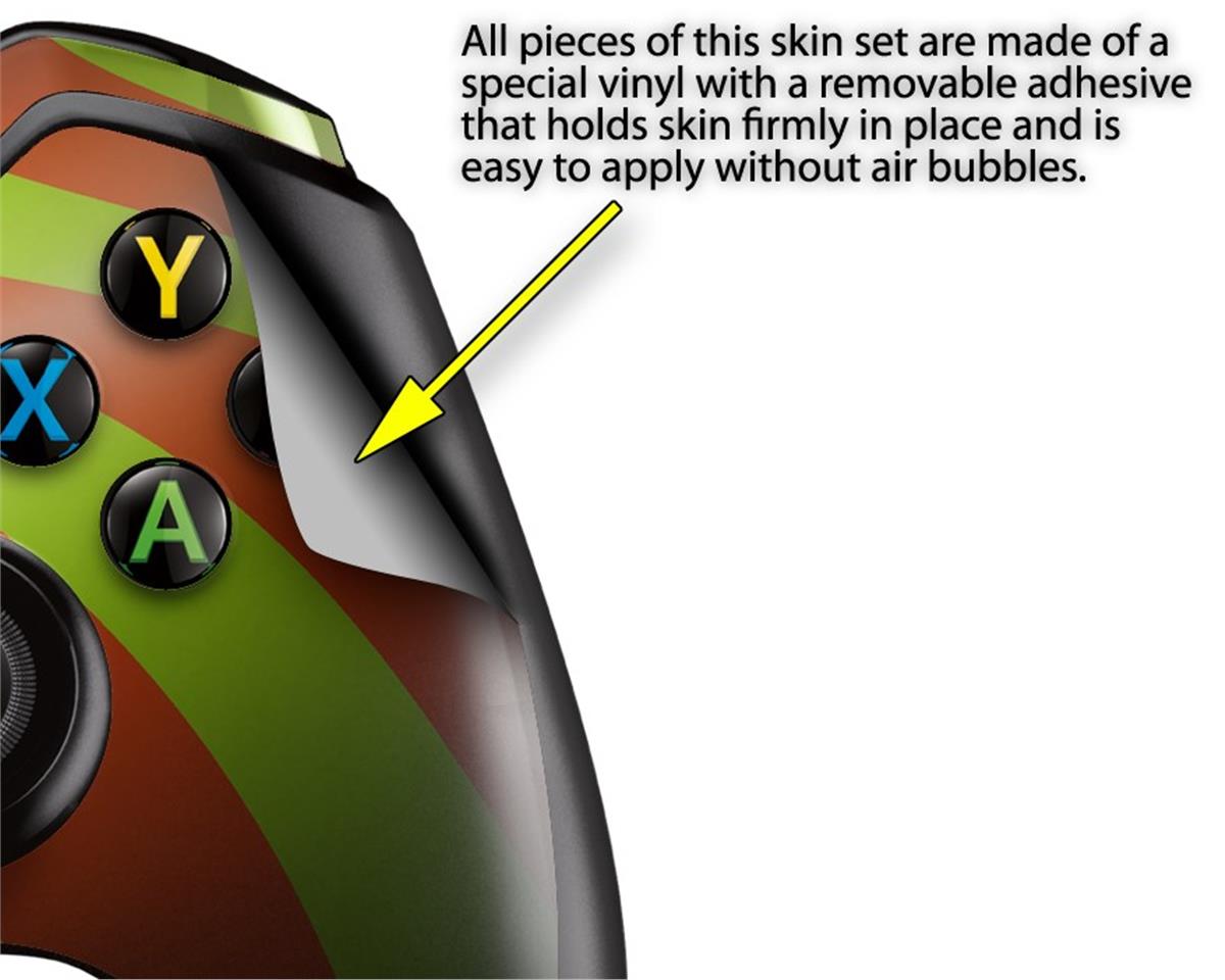 WraptorSkinz® wraps for the XBOX One controller are self-adhering vinyl skins that help prevent scratches and look great. Unlike bulky silicon and plastic covers, WraptorSkinz XBOX 1 skins are designed to be thin and very tough. WraptorSkinz are a composite of two layers of professional grade materials. The bottom layer is a soft, flexible vinyl with a special removable adhesive that is easily positioned and applied without air bubbles. The bottom layer of the XBOX One Controller skin is printed with special UV protected, fade resistant inks that deliver superb photo quality designs in vibrant colors. Finally, we bond a professional grade laminate over the entire XBOX One skin adding a glossy protective finish.