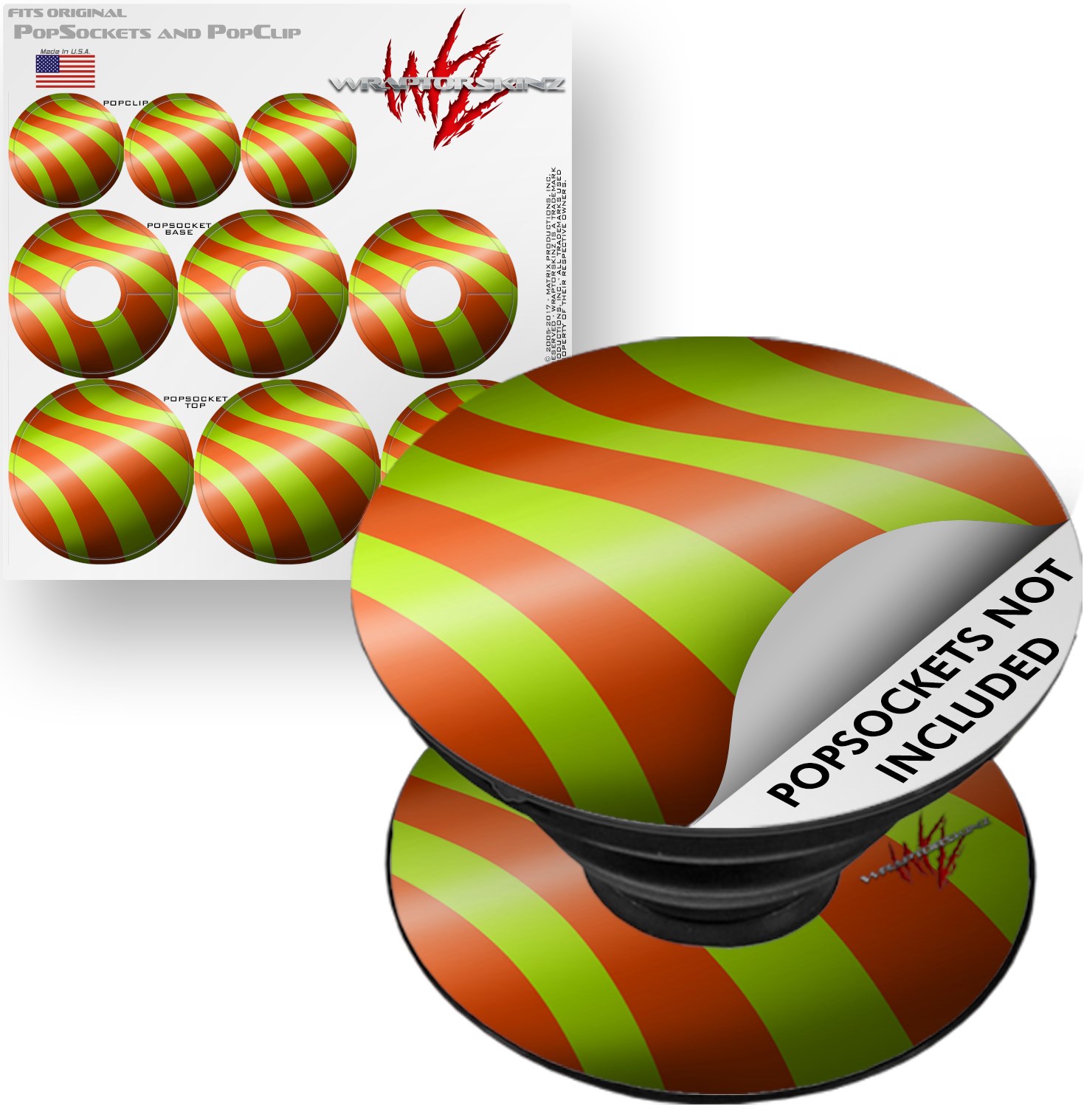WraptorSkinz® skin decals are printed using superb photo quality designs and vibrant colors printed with special fade resistant inks that last even in direct sun for years. WraptorSkinz® are a composite of two layers of commercial grade materials. The bottom layer is a soft, flexible vinyl with a special removable adhesive that is easily positioned, applied without air bubbles. Next, we print the bottom layer with UV protected, fade resistant inks that deliver superb photo quality designs in vibrant colors. Finally, we bond a professional grade laminate over the entire skin adding a glossy protective finish. This WraptorSkinz skin accessory is not affiliated with, endorsed by and is in no way connected with the PopSocket products or brand.