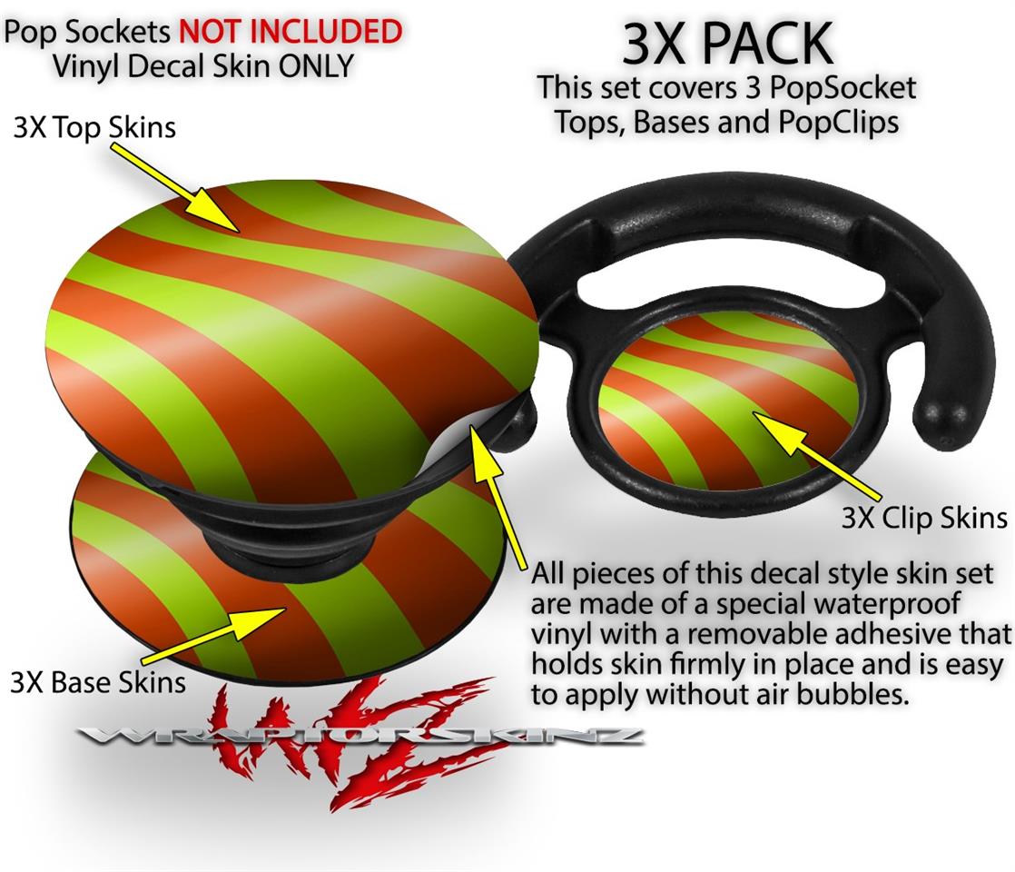 Decal Style Vinyl Skin Wrap 3 Pack for PopSockets Two Tone Waves Neon Green Orange (POPSOCKET NOT INCLUDED)
