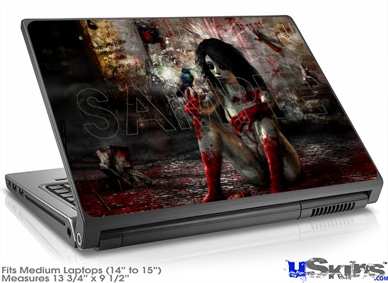 Laptop Skin fits most medium size laptops with 14" to 15" screens. Skin measures 13 3/4" wide x 9 1/2" high. uSkinsTM self adhering vinyl skins will look amazing on your electronic gear, printed at the highest resolution possible for unbeatable color and razor sharp clarity. Unlike bulky silicon, plastic or metal cases and faceplates, uSkins are designed to be thin and very tough. uSkins are a composite of layered commercial grade vinyls. The bottom layer is a soft, flexible vinyl with a special removable adhesive that is easily positioned, applied without air bubbles, and effortlessly removed without leaving a sticky residue. uSkins are printed with the latest in UV protected inks that resist fading for up to 3 years even in direct sunlight. Finally we bond a professional grade laminate over the entire skin adding a professional glossy protective finish.