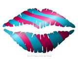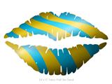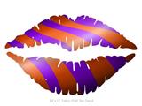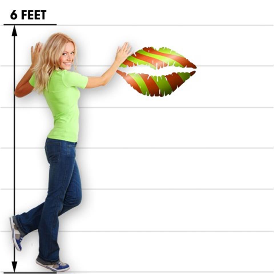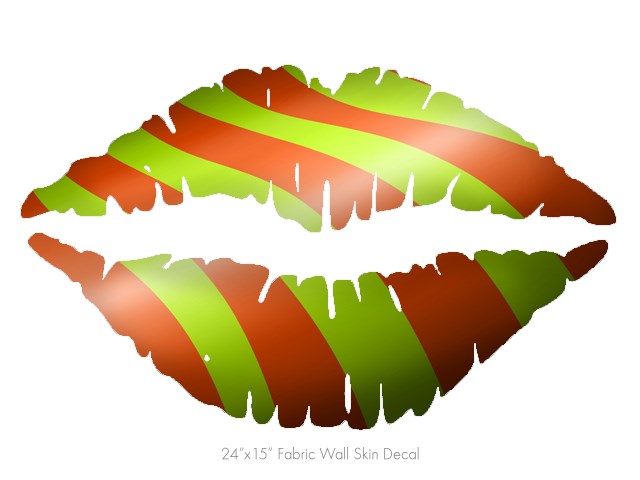 Two Tone Waves Neon Green Orange - Kissing Lips Fabric Wall Skin Decal measures 24x15 inches